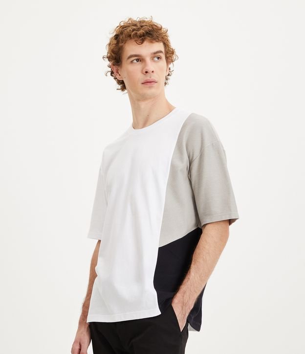 Camiseta Boxy em Meia Malha com Blocos de Cor e Detalhes Texturizados