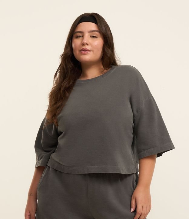 Camiseta Boxy em Moletinho Efeito Estonado Curve & Plus Size