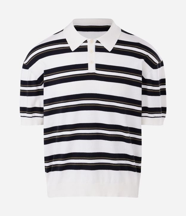 Camiseta Boxy em Tricô Listrado com Gola Polo Branco