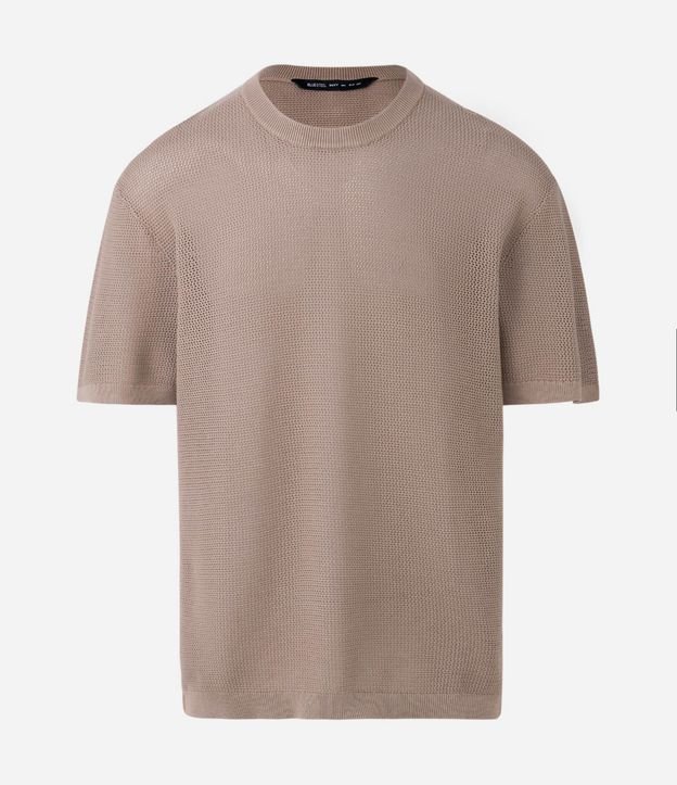 Camiseta em tricot vazado com fit boxy, oferecendo textura leve e visual moderno. Possui gola redonda, caimento confortável e toque macio. Ideal para compor produções casuais com estilo contemporâneo, confeccionado em algodão de certificado BCI para um processo mais sustentável.