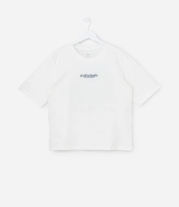 Camiseta Boxy Infantil com Lettering Slow Sundays - Tam 5 a 14 Anos Branco