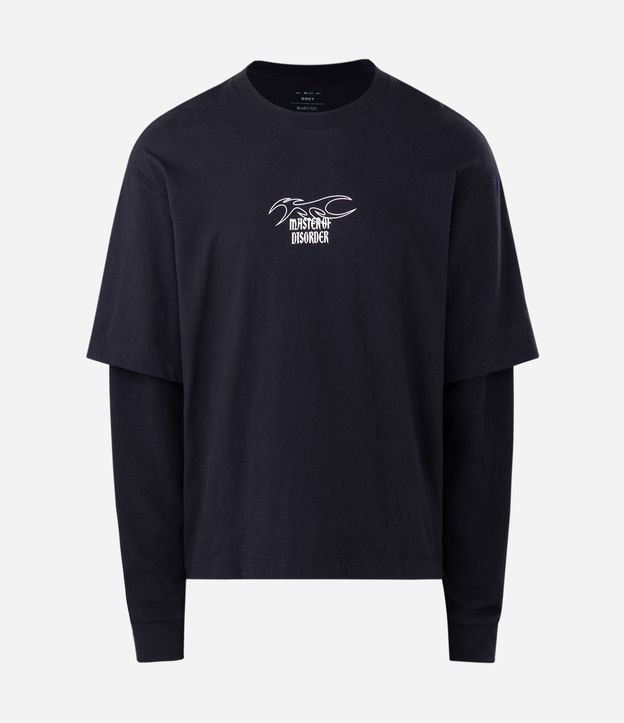 Camiseta Boxy Manga Longa com Estampa Desorder Preto