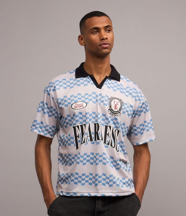 Camiseta t-shirt masculina confeccionada com tecnologia dry, gola polo, manga curta e estampa listrada com lettering. Peça no modelo boxy sportcore que permite um toque diferenciado para seu look.