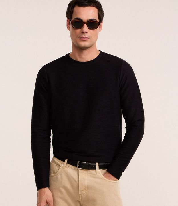 Camiseta com Textura Canelada Preto