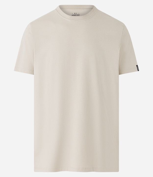 Camiseta Comfort Básica em Malhão com Etiqueta na Manga Bege Claro