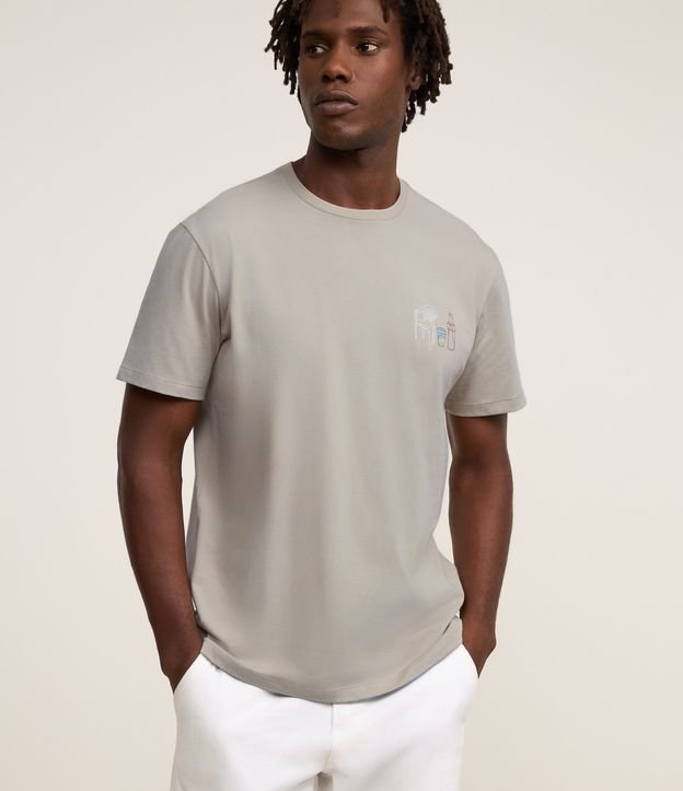 Camiseta Comfort com Estampa de Cerveja Gelada Cinza