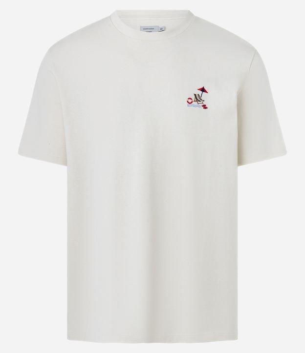 Camiseta Comfort em Algodão com Bordado Cadeira na Praia Branco