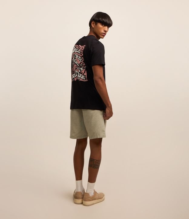 Camiseta Comfort em Algodão com Estampa Abstrata e Lettering Preto