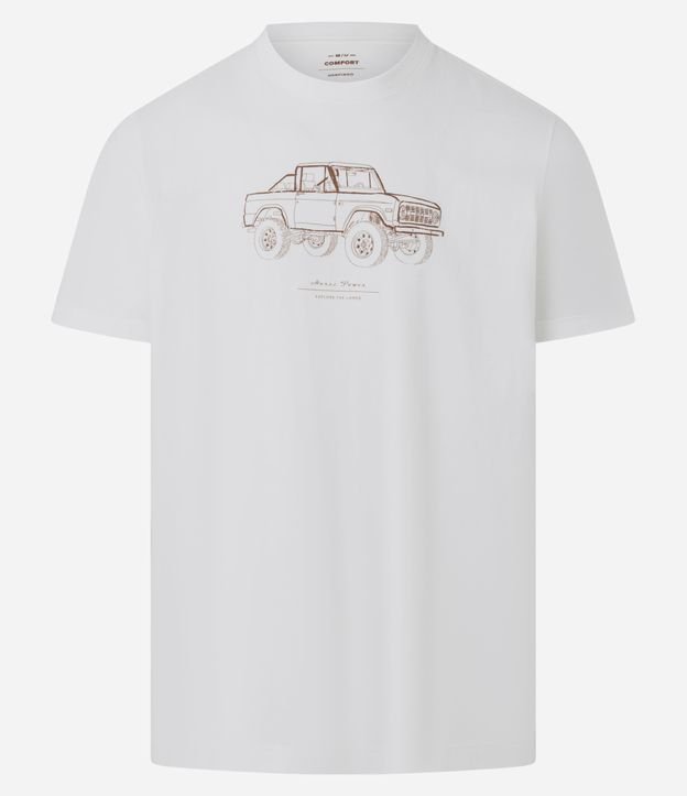 Camiseta Comfort em Algodão com Estampa Car off Road Branco