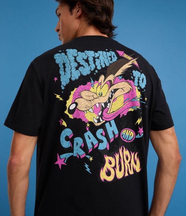 Camiseta Comfort em Algodão com Estampa Coiote Crash And Burn Preto