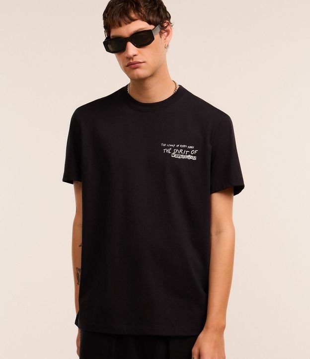 Camiseta masculina confeccionada em algodão mais sustentável com boas práticas ambientais, no modelo comfort. Possui gola redonda, manga curta, estampa de anjo e lettering.