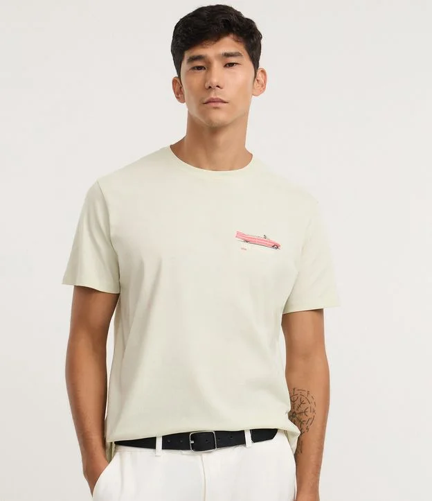 Camiseta masculina confeccionada em algodão mais sustentável, no modelo comfort. Possui gola redonda, manga curta, estampa de carro e estampa lettering "Los Angeles" frontais e traseiras.