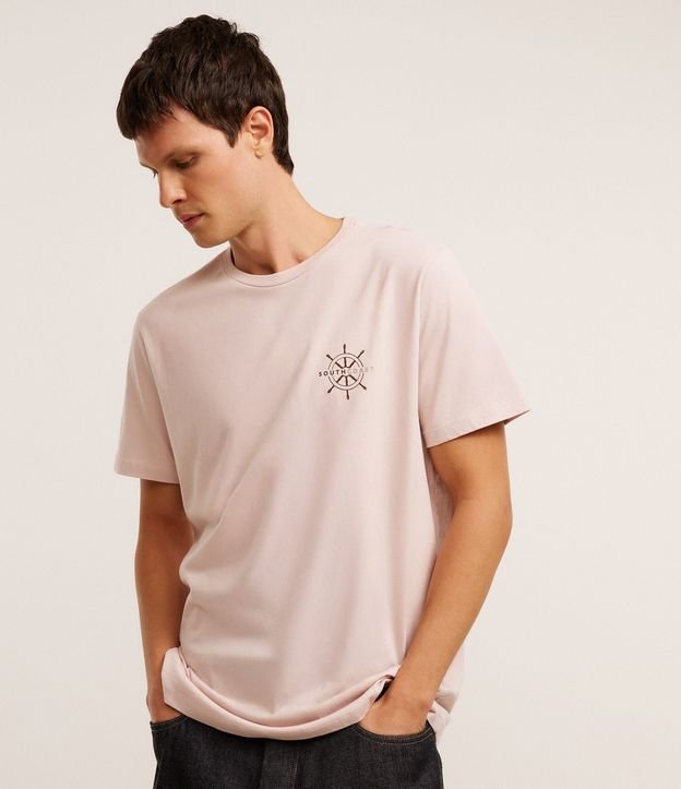 Camiseta Comfort em Algodão com Estampa de Leme Rosa