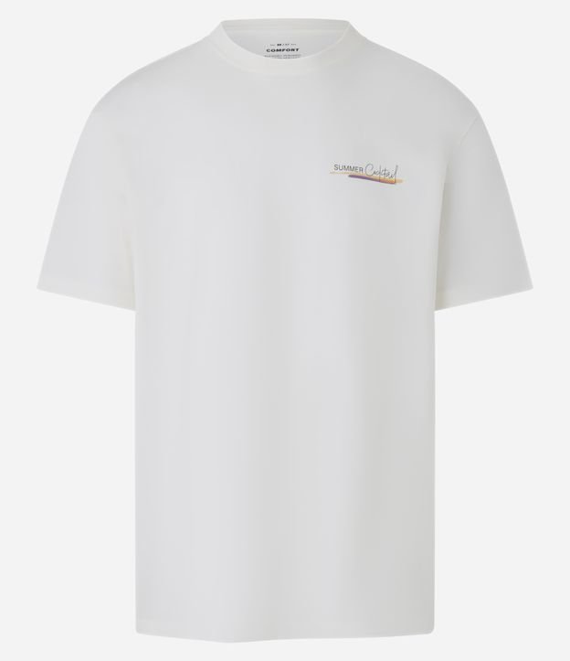Camiseta Comfort em Algodão com Estampa Drink e Coquetel Branco