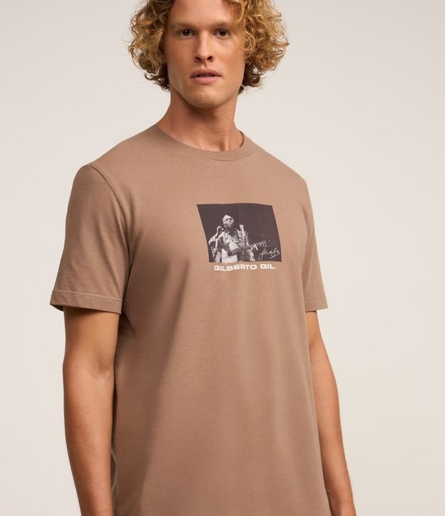 Camiseta Comfort em Algodão com Estampa Gilberto Gil Marrom