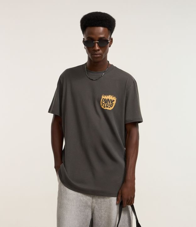 Camiseta Comfort em Algodão com Estampa Pink Floyd Cinza