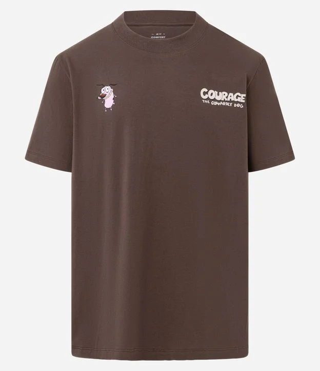 Camiseta Comfort em Algodão com Estampado Coragem O Cão Covarde Marrom