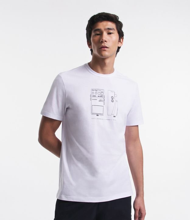 Camiseta Comfort em Meia Malha com Estampa Pedal de Guitarra
