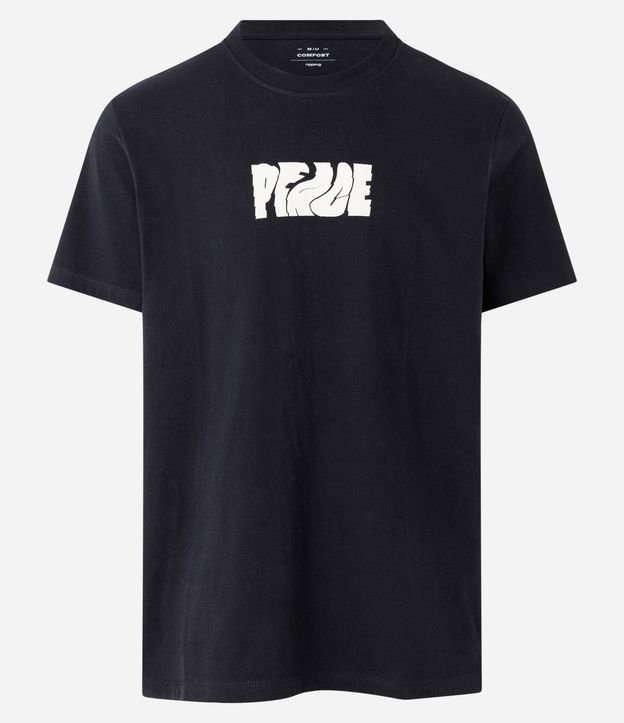 Camiseta Comfort em Meia Malha com Lettering Peace Preto