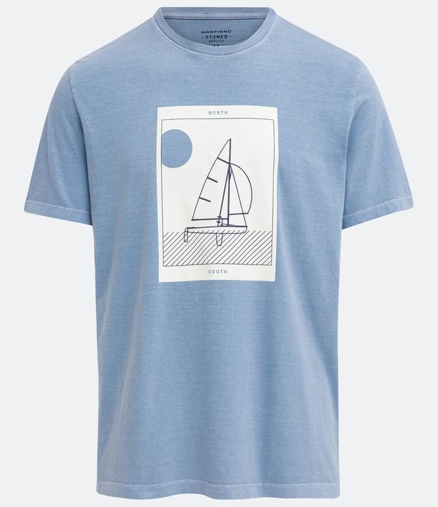 Camiseta Comfort Estonada em Algodão com Estampa de Barco