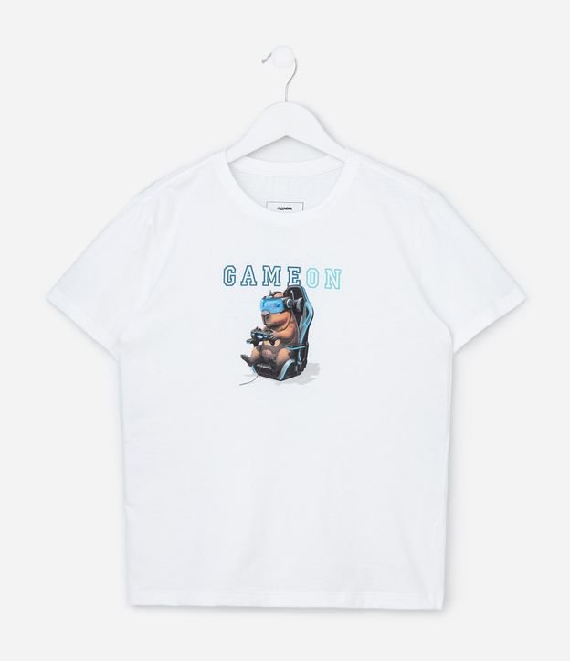 Camiseta Comfort Infantil com Estampa de Capivara Game On - Tam 5 a 14 Anos Branco