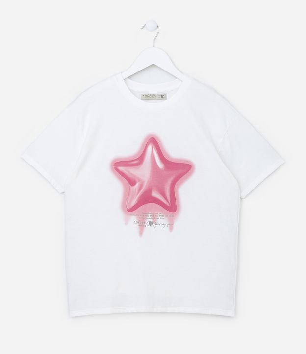 Camiseta Comfort Infantil com Estampa Estrela 3D - Tam 7 a 14 Anos Branco Neve