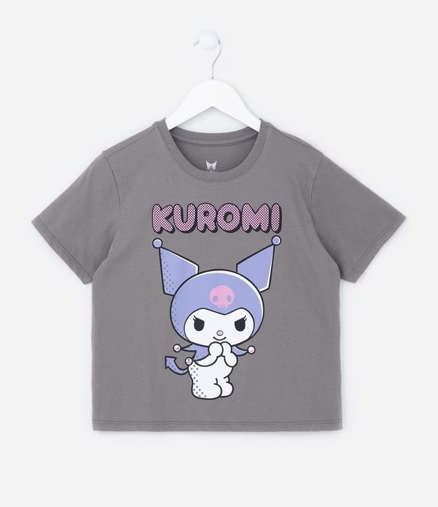Camiseta Comfort Infantil com Estampa Kuromi - Tam 5 a 14 Anos Cinza