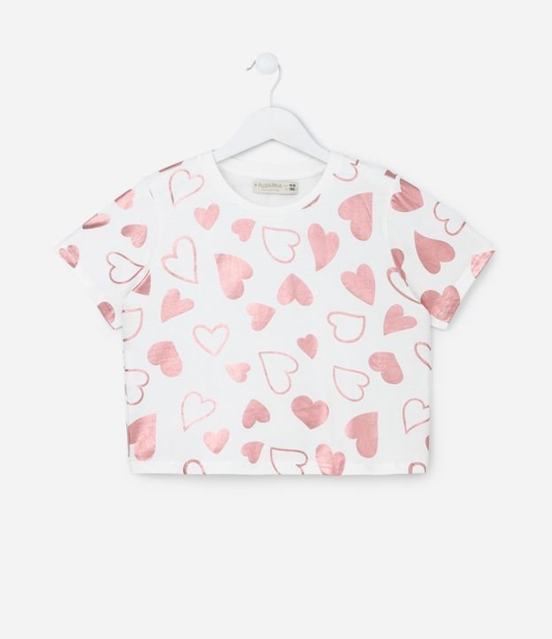 Camiseta Cropped com Estampa Corações - Tam 5 a 14 Anos