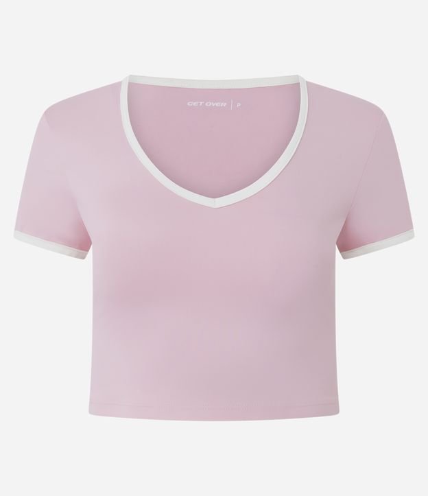 Camiseta Cropped Esportiva com Viés Contrastantes Rosa