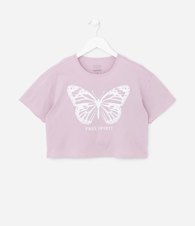 Camiseta Cropped Infantil com Estampa de Borboleta - Tam 5 a 14 anos