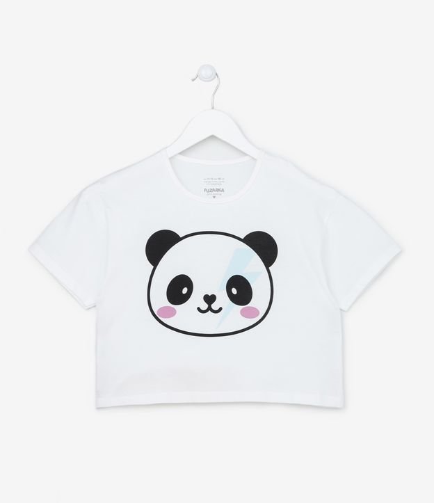Camiseta Cropped Infantil com Estampa de Panda - Tam 5 a 14 anos