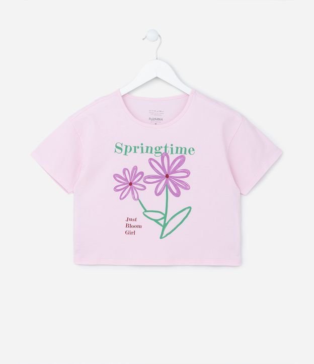 Camiseta Cropped Infantil com Estampa Flores - Tam 5 a 14 Anos Rosa