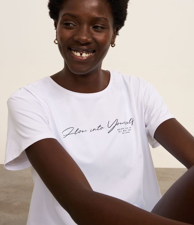 Camiseta Cropped Oversized Esportiva com Tecnologia Dry e Estampa Flow Branco