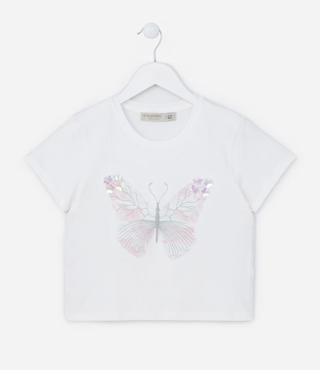 Camiseta Curta Infantil com Bordado Borboleta - Tam 5 a 14 Anos
