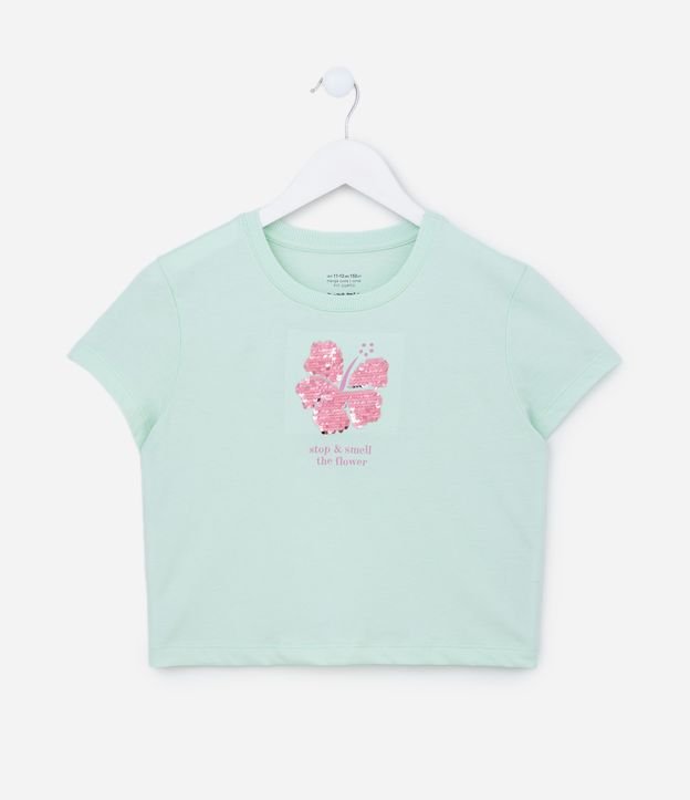 Camiseta Curta Infantil com Bordado em Paetês - Tam 5 a 14 Anos