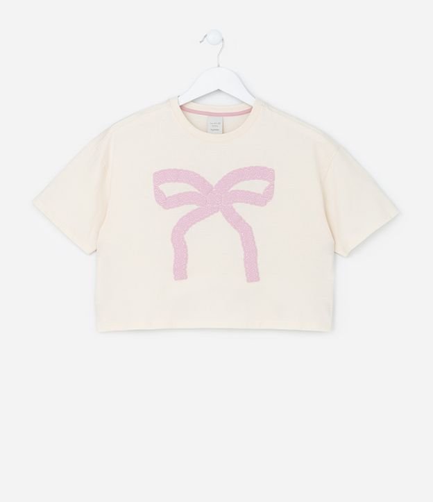 Camiseta Curta Infantil com Estampa Laço - Tamm 5 a 14 Anos Bege