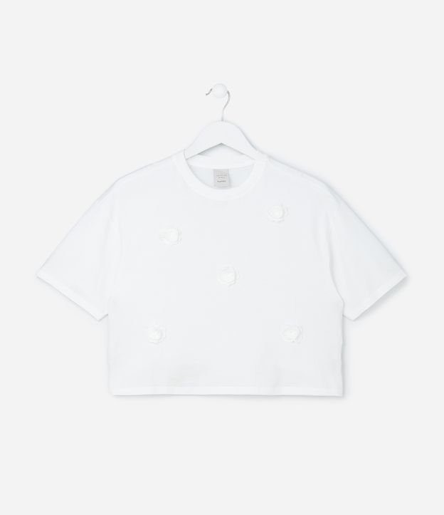 Camiseta Curta Infantil com Flores Aplicadas - Tam 5 a 14 Anos Branco