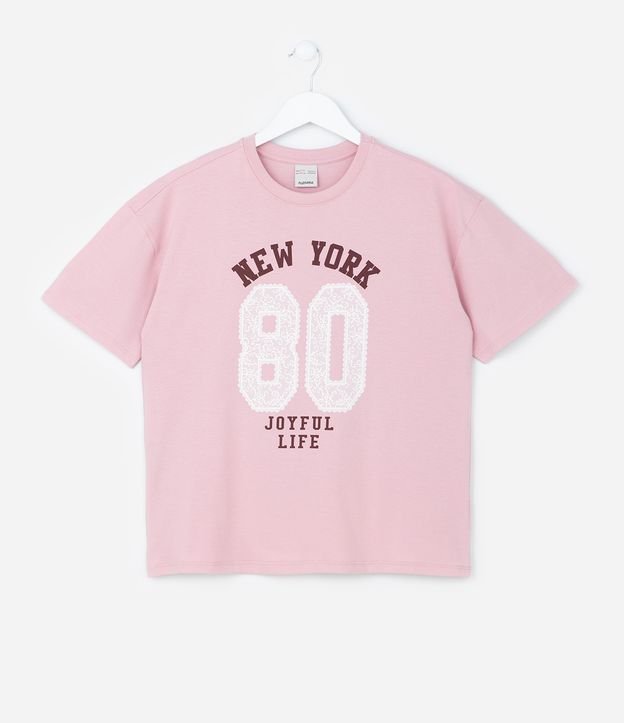 Camiseta Curta Infantil com Lettering New York - Tam 5 a 14 Anos Rosa
