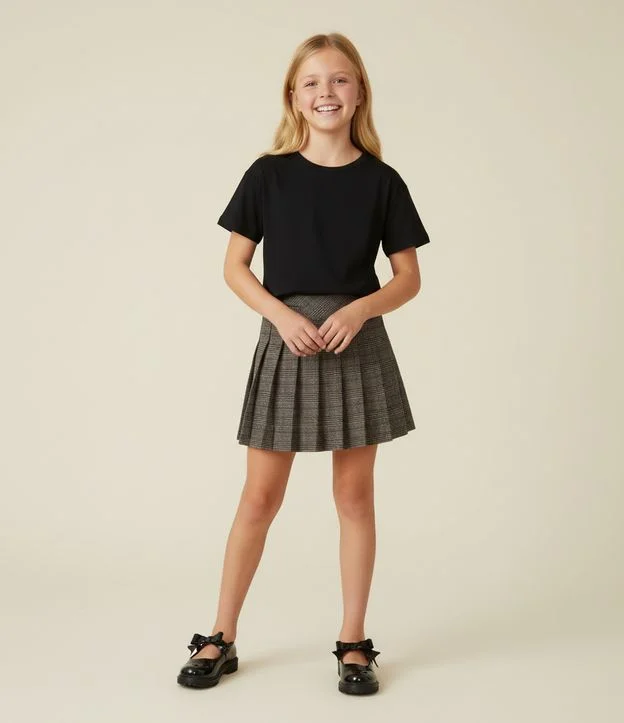 Camiseta Curta Infantil em Cotton Malhão - Tam 5 a 14 anos Preto
