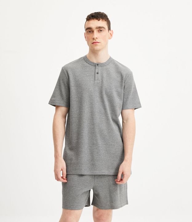 Camiseta de Pijama em Algodão com Gola Padre e Textura Waffle