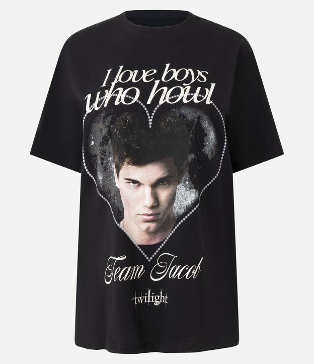 Camiseta em Algodão com Estampa Crepúsculo Team Jacob Preto