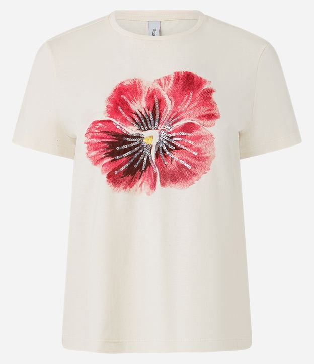 Camiseta em Algodão com Estampa de Flor Off White