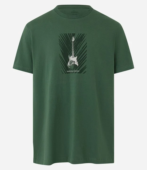 Camiseta em Algodão com Estampa de Guitarra Tropical Sound Verde