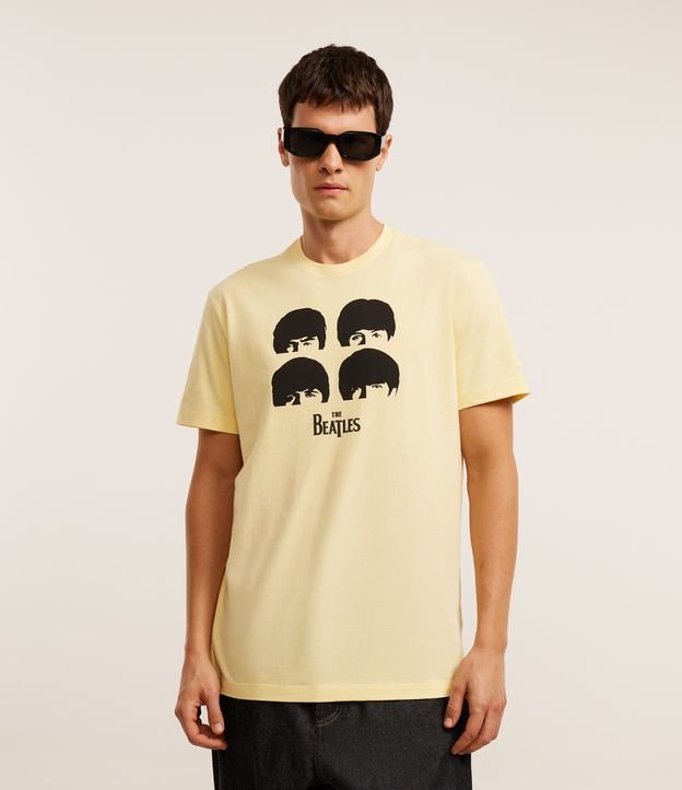 Camiseta em Algodão com Estampa de Rostos The Beatles Amarelo