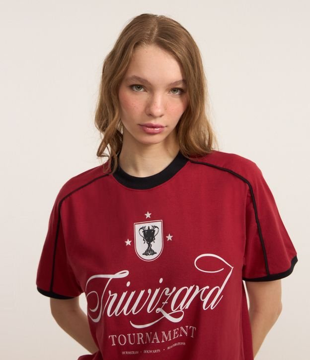 Camiseta em Algodão com Estampa do Harry Potter Vermelho