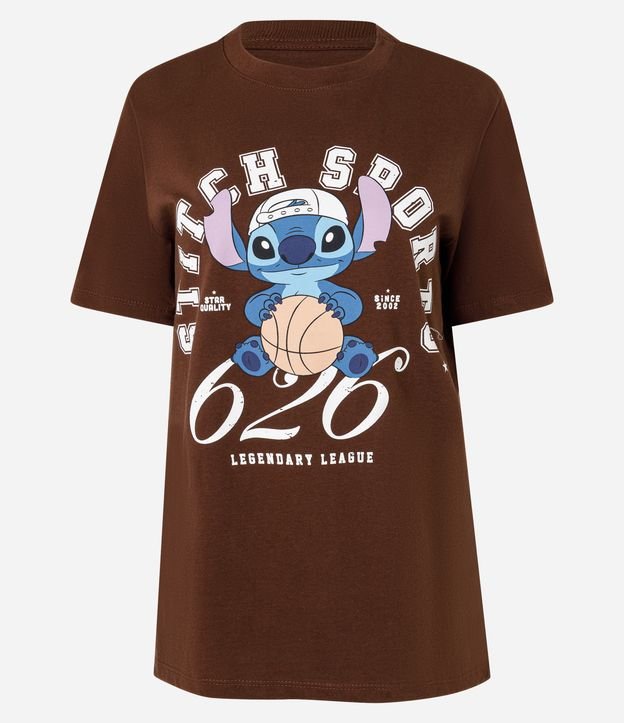Camiseta em Algodão com Estampa Stitch Basquete Marrom