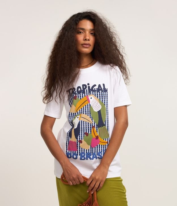 Camiseta em Algodão com Estampa Tropical do Brasil Branco Neve