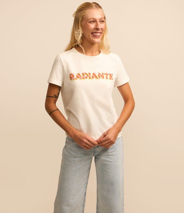 Camiseta t-shirt com mangas curtas, confeccionada em algodão mais sustentável e estampa em lettering Radiante.