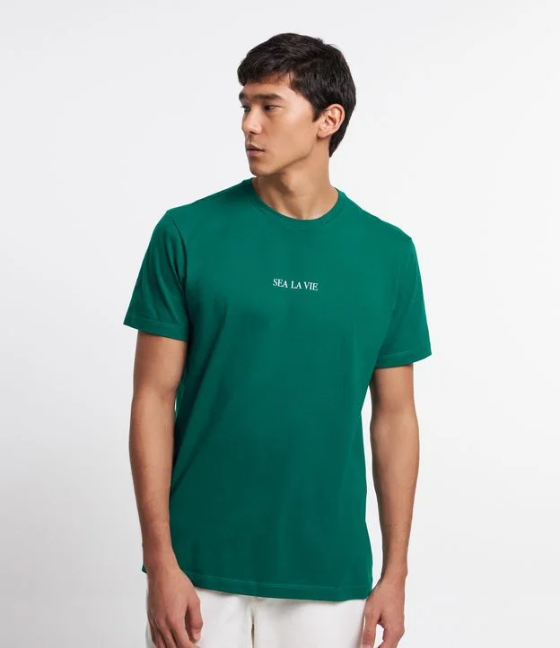 Camiseta em Algodão com Lettering Sea La Vie Verde