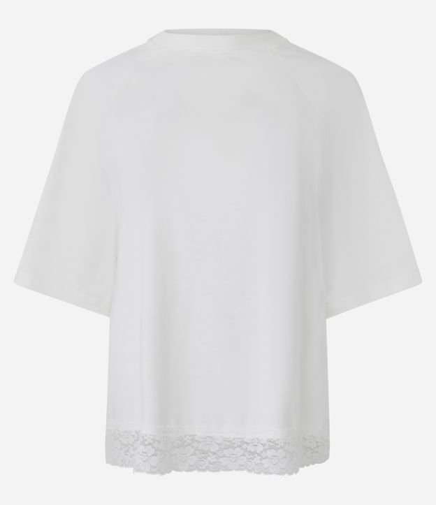 Camiseta em Algodão com Manga Curta e Detalhe Rendado na Barra Branco